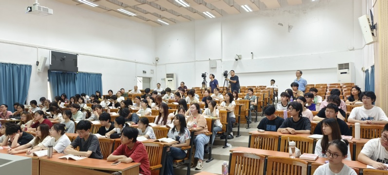 在课堂上,同学们认真把握学习机会,积极听讲、学习投入。大家边听边记笔记,主动回应胡教授循循善诱地提出的问题,课堂气氛严肃而又活泼。