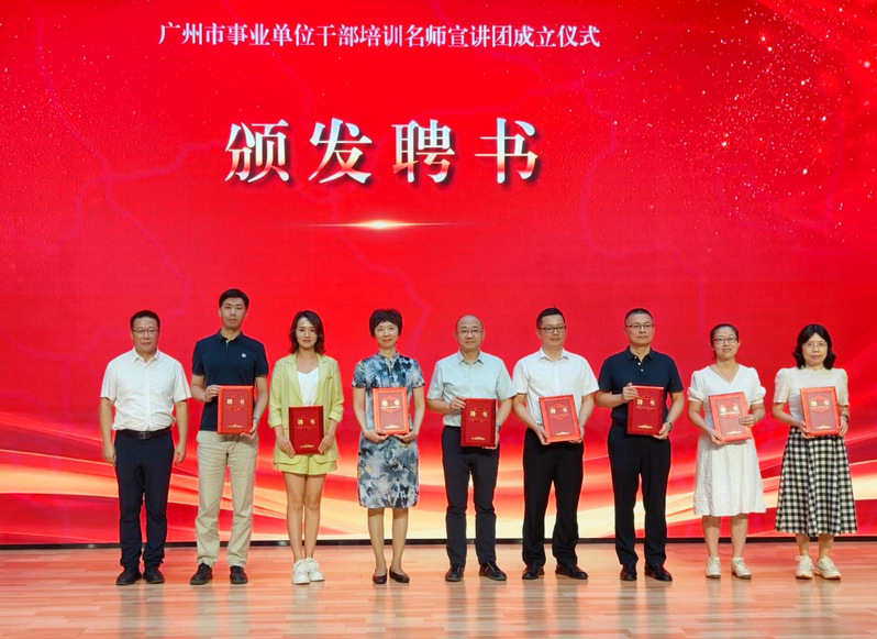 10月13日,广州市事业单位干部培训名师宣讲团成立仪式暨教学研讨会在广州图书馆举行。广州市人力资源和社会保障局党组成员、副局长林念出席活动并致辞。我校教师工作部副部长刘丁蓉应邀参加成立仪式。会上,我校袁继红、矫萍、曾志辉、朱信贵、邝艳华、陶日贵、孙晓晖、王金锋、黄冬如、许哲、蒙锡岗、张霞、崔建华、张浩然、何缨15位教师获聘宣讲团成员。
