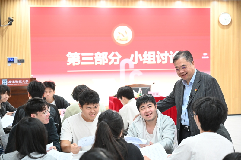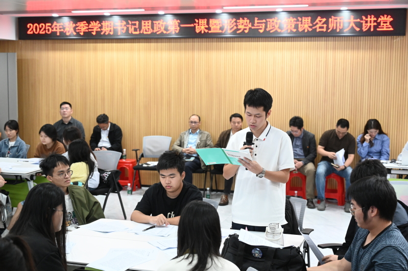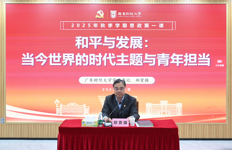 10月24日下午,校党委书记郑贤操以“和平与发展:当今世界的时代主题与青年担当”为题,在广州校区立德楼一楼116室为工商管理学院(粤商学院、创新创业学院)2023级工商管理2班、2023级市场营销2班全体同学讲授“思政第一课”。
