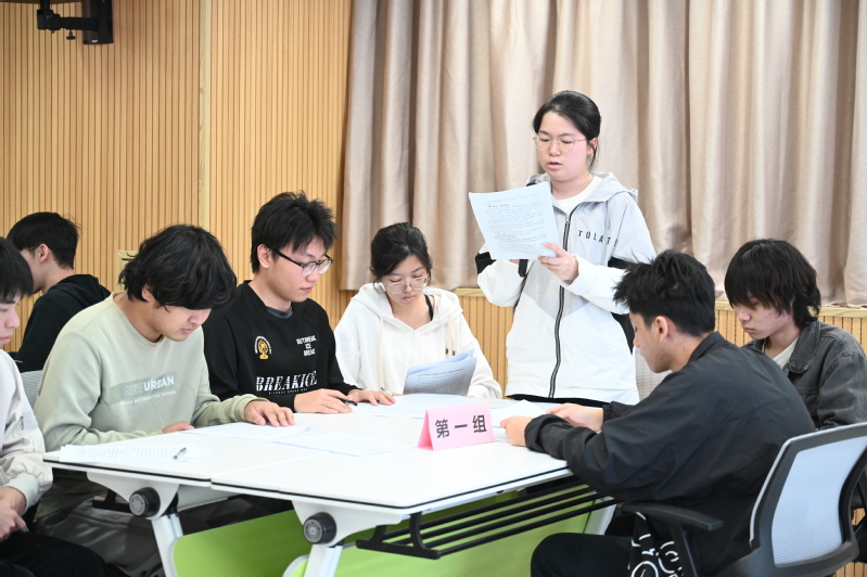 主题讲授结束后,课堂教学进入独学内化、分组讨论、小组汇报阶段。学生结合授课内容,阅读相关材料,独立思考,提出问题并进行讨论。在小组汇报环节,各小组代表结合授课内容和自身所学专业,围绕“和平与发展”时代主题的深刻内涵、面临的现实挑战及青年使命担当等主题汇报了小组讨论的结果。