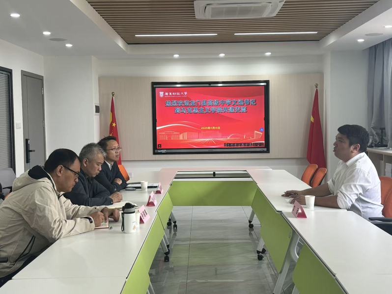 为深入落实省委“百千万工程”部署要求,统筹推进我校“双百行动”提质增效,推动我校与龙门县校地结对共建工作走深走实,2025年11月14日上午,龙门高级中学党总支书记文远与马克思主义学院班子成员在立德楼105会议室开展共建交流。活动由马克思主义学院党委书记张小洁主持,院长孙晓晖教授、副院长蒙锡岗教授参加共建交流座谈。