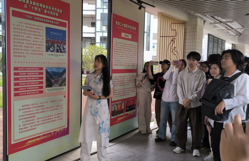 活动现场,全体成员沿着思政长廊的文化脉络缓步前行,大家驻足聆听、认真思考。党支部精心挑选党员讲解员带领大家共同学习。在理论前沿展区,大家系统学习领会党的二十届四中全会精神,深刻感悟 “十四五”时期我国在高质量发展征程上取得的历史性成就与变革性实践。同时,聚焦国家 “十五五”规划的战略擘画与前瞻布局,聚焦国家“十五五”规划的前瞻性布局,进一步明晰新时代新征程党的使命任务、发展重点与前进方向,在思想淬炼中强化理论武装,在对标看齐中坚定前行信心。