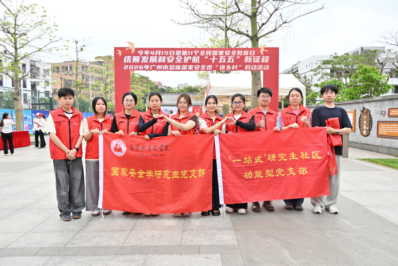 为深入贯彻党的二十大关于“全面加强国家安全教育,增强全民国家安全意识和素养,筑牢国家安全人民防线”重要精神,响应司法部、全国普法办在全国开展2026年全民国家安全教育日普法宣传活动的号召,4月10日,马克思主义学院国家安全学研究生党支部联合研究生院“一站式”研究生社区功能型党支部,前往广州市白云区太和镇开展“4·15”全民国家安全教育日普法宣传活动。本次活动由国家安全与发展研究院专任教师杨飞带队,国家安全学研究生党支部、“一站式”研究生社区功能型党支部共13名研究生党员参与。