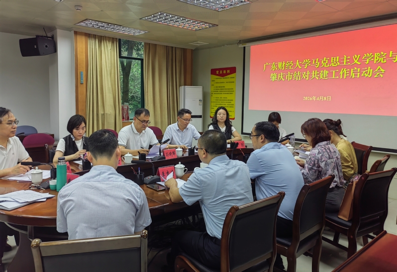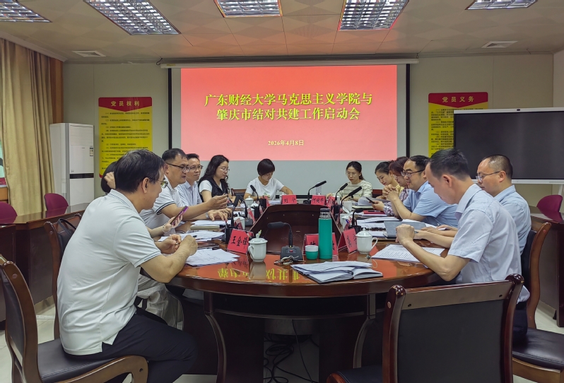 会上,龚宁介绍2026年肇庆结对共建工作准备情况,就《2026年度肇庆市各地联合调研情况摸查表》《2026年度肇庆市基层理论学习宣讲摸查表》做了说明。孙晓晖充分肯定了肇庆市为这次结对共建工作做的前期准备,两个“摸查表”一目了然的反映了肇庆市各地的需求。并详细介绍了广财马院作为省重点马克思主义学院的学科特色、理论优势、人才队伍及基层理论武装工作开展情况,希望与肇庆市的结对共建工作既能满足“肇庆所需”,又能充分体现“马院所能”,最后他提出要进一步圈定肇庆市各地联合调研主题和肇庆市基层理论学习宣讲的范围。林雪松、方小薇分享了肇庆各地经济特色及企业的文化建设,为双方精准对接奠定坚实基础。