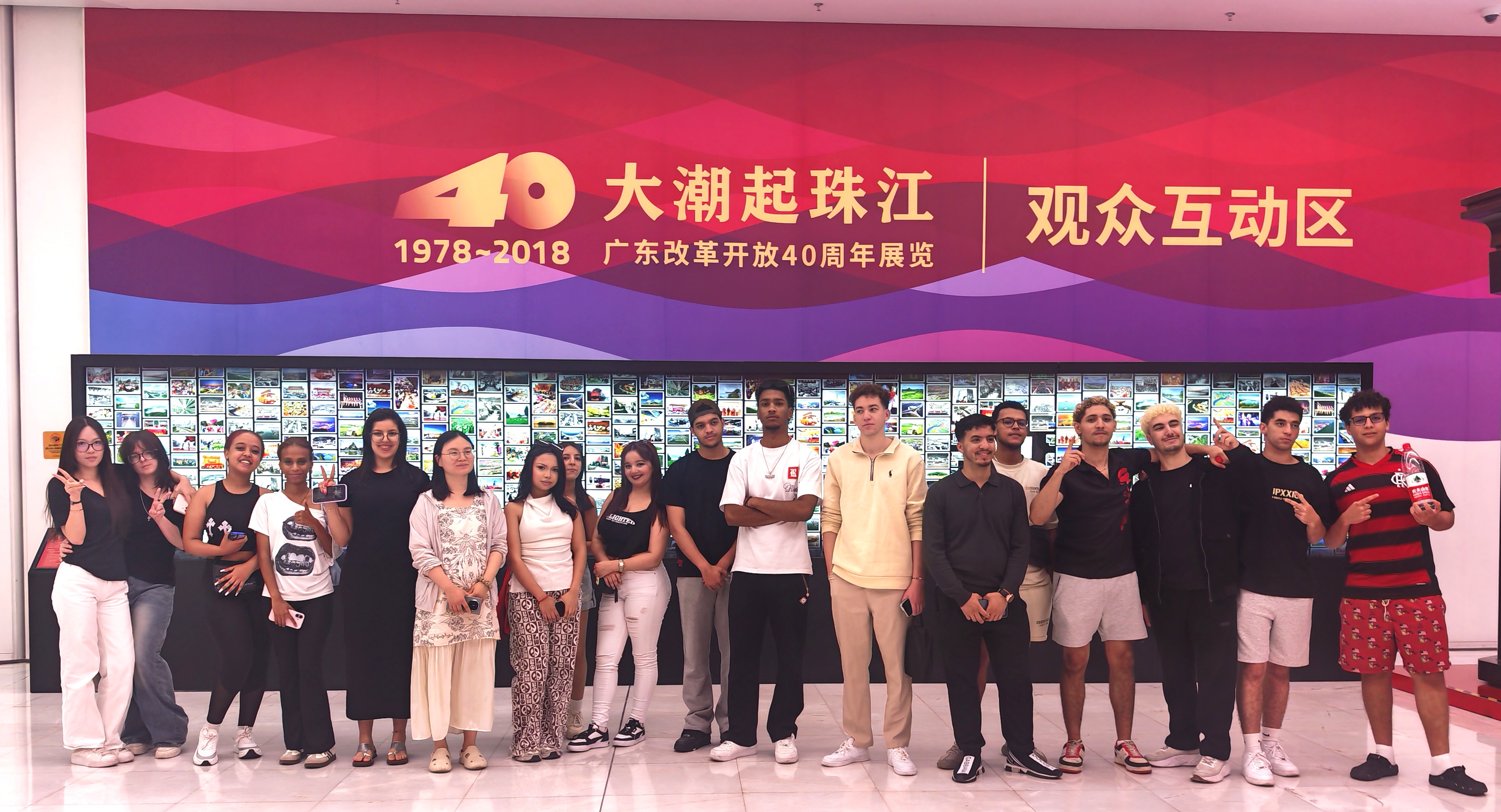 在深圳改革开放展览馆,留学生们走进 “大潮起珠江 ——广东改革开放 40 周年展览”,沿着历史脉络依次参观 “敢为人先 勇立潮头(1978—1992)”“增创优势 砥砺前行(1992—2012)”“走在前列 当好窗口(2012—2018)”三大核心展区。留学生认真观看蛇口开山炮、“时间就是金钱、效率就是生命”等复原场景与珍贵实物、影像资料,以及“一带一路”倡议下的开放新格局,系统了解从经济特区设立到全面深化改革的关键阶段与重大突破,直观感受广东的沧桑巨变,以及深圳从边陲小镇到国际化大都市的惊人变化,深刻认识改革开放是决定当代中国命运的关键抉择。